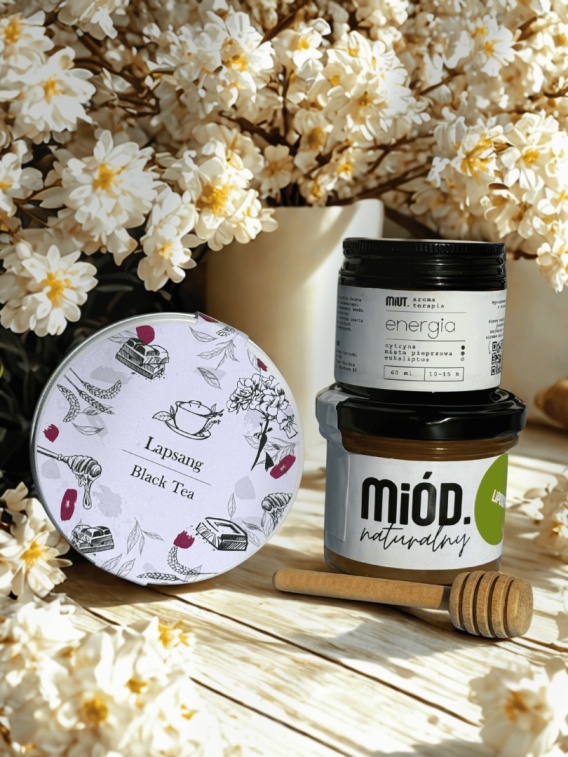 Podaruj bliskim aromatyczną dawkę energii. Ten zestaw łączy wyrazistą czarną herbatę, pobudzający aromat świecy oraz naturalną słodycz miodu, tworząc idealny prezent dla osób, które kochają intensywne smaki i domowe rytuały.
